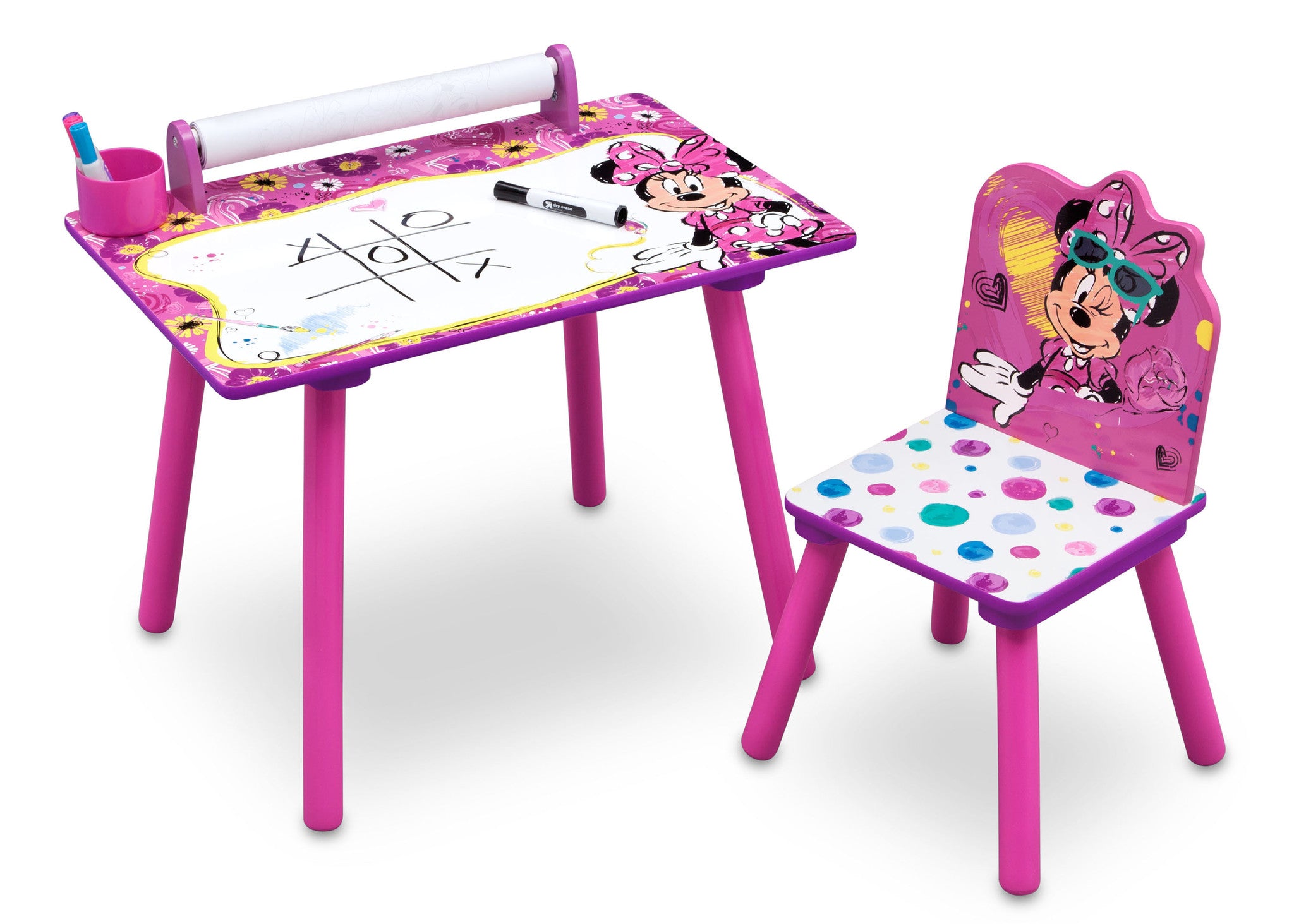 The Minnie Mouse Art Desk from Delta Children gives budding artists plenty of inspiration. Featuring a spacious tabletop with dry-erase surface and paper roll printed with ready to color Minnie images, this desk and chair set is the perfect gift for any Minnie Mouse fan. Plus, built-in storage for art supplies keeps everything contained in one convenient spot.
